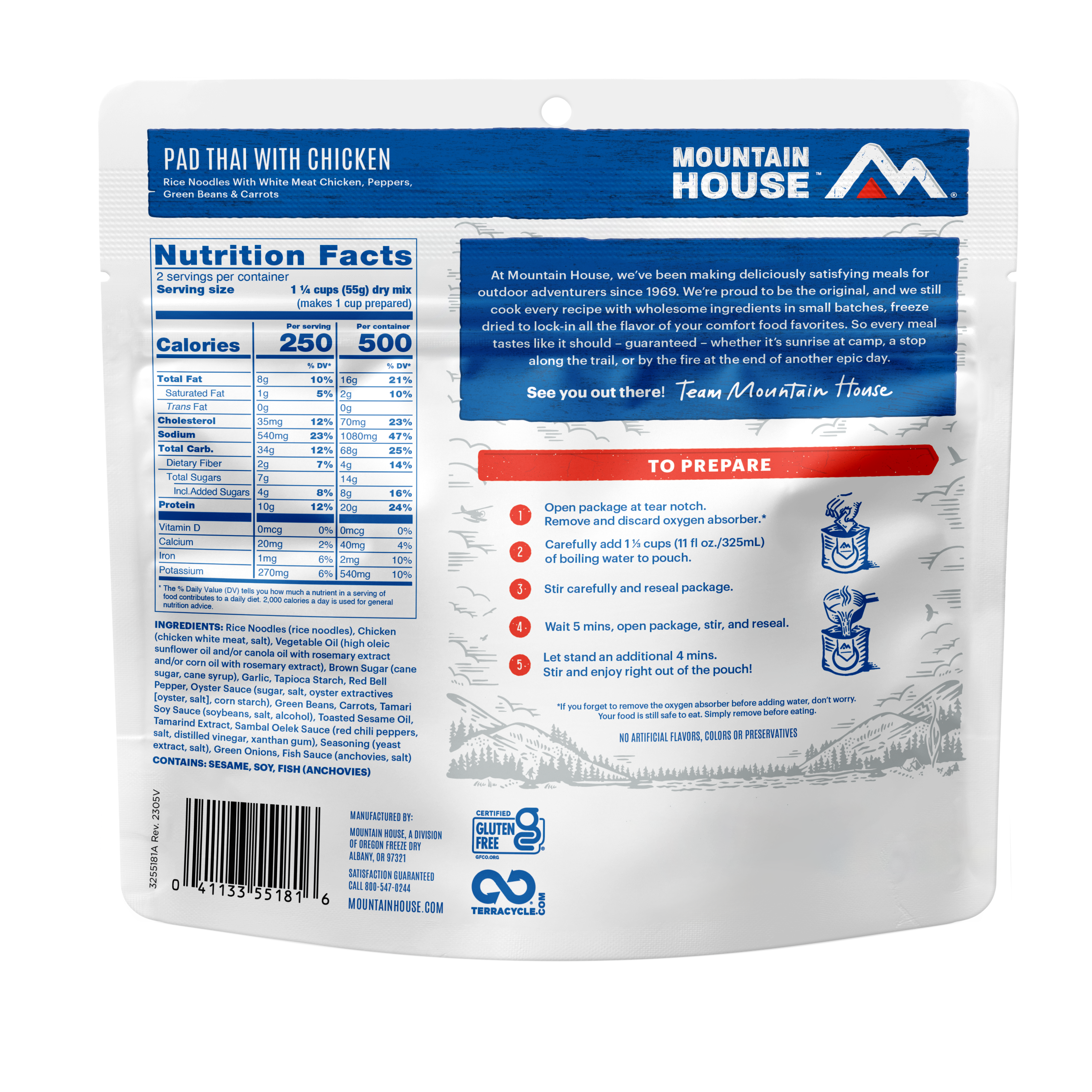 Better than takeout! Our Pad Thai is proof that pre-packaged foods outdoors doesn't have to be bland or dull. With a base of noodles, a handful of herbs and spices, and tender pieces of chicken, this is one for all the foodies to enjoy.